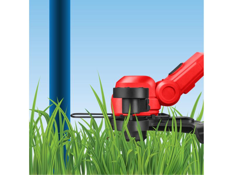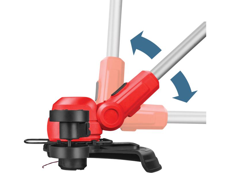 A kaszáló fej dőlésszögének a beállításával nehezen hozzáférhető helyeken (pl. padok alatt) is lehet füvet nyírni.