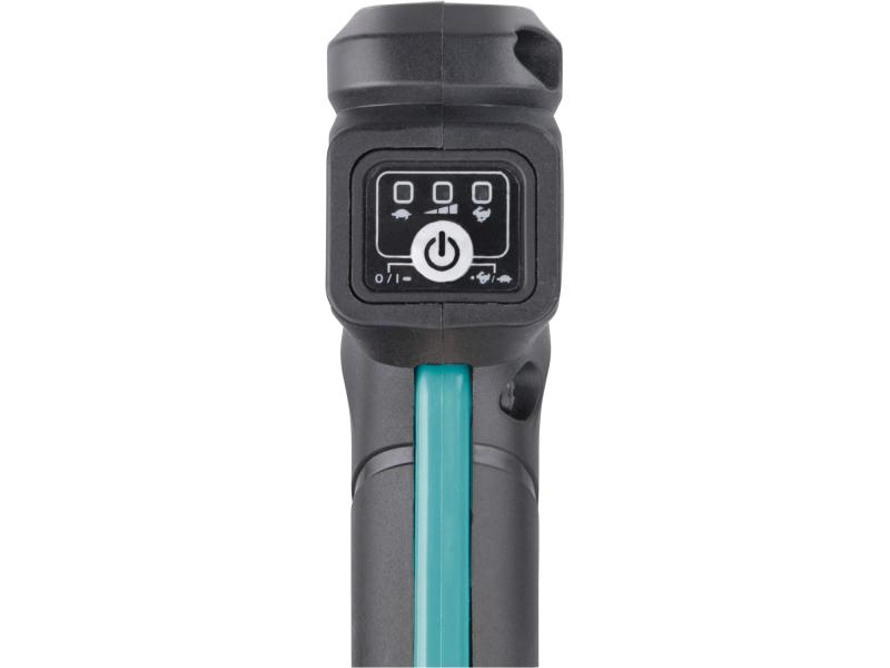 - A működtető elemek a jobb fogantyúnál találhatók, és itt lehet beállítani a három fordulatszám tartományt is. A kiválasztott fordulatszám tartományon belül, a fordulatszámot a működtető kapcsoló (ravasz) benyomásának a mértékével lehet szabályozni. Biztonsági kapcsolóval a véletlen elindulás ellen.