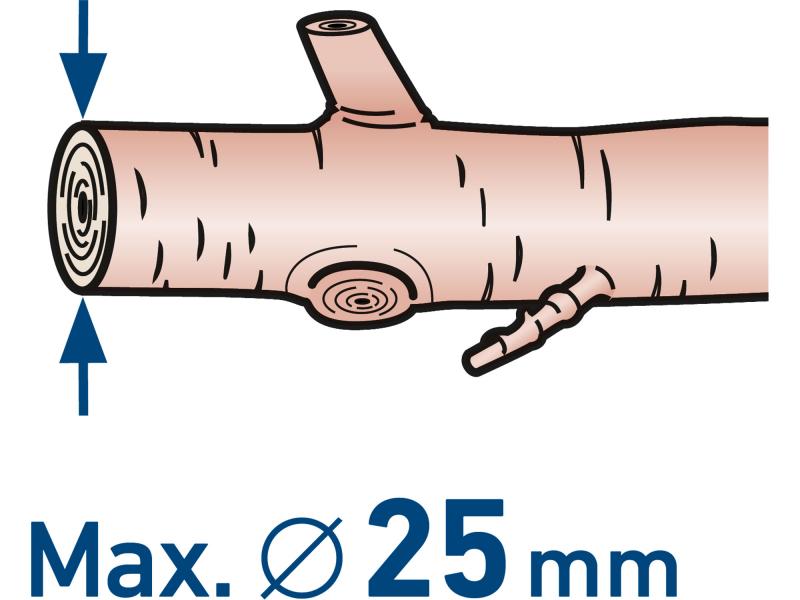 Az akkumulátoros metszőolló lehetővé teszi a fák és bokrok ágainak és növényi szárak egyszerű vágását 25 mm átmérőig. Az ollót a legkorszerűbb kefe nélküli motor hajtja. Ez az új típusú motor hosszabb élettartamú, nagyobb teljesítményű és kevesebb áramot fogyaszt, mint a hagyományos szénkefés motorok. A vágókések távolságát az ágak átmérőjének megfelelően elektronikusan állító funkciónak köszönhetően a paramétereket a vágási célnak megfelelően állíthatja be, ami felgyorsítja a munkát, csökkenti a fogyasztást és hosszabb akkumulátor-élettartamot biztosít. Ez a távolság 10, 15 vagy 25 mm-re állítható. A vágókések élezhetők és könnyen cserélhetők. Üresjáratban az olló hibernált állapotba kerül, hogy kímélje az akkumulátort. Az alkalmazott technológiának köszönhetően az akkumulátor bármikor feltölthető anélkül, hogy kapacitása csökkenne, az önkisülés miatt nagyon lassan veszít energiát, ezért feltöltve sokáig üzemképes marad.