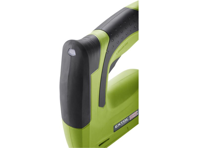 akkus tűzőgép, Li-ion; 4V, 1300 mAh, kapcsok: 6-14mm (11,3×0,7mm), szegek:6-14mm (1,2×1,0-2,0), max. 30 lövés/perc