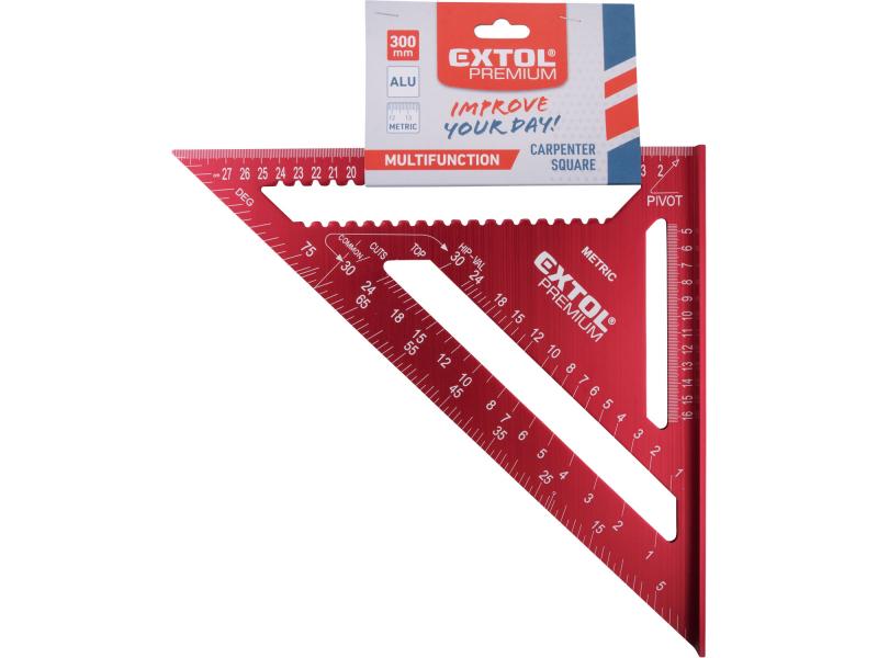 asztalos derékszög, 300 mm, ALU, lézer gravírozott, mm beosztás, 0-90° ferde beosztás