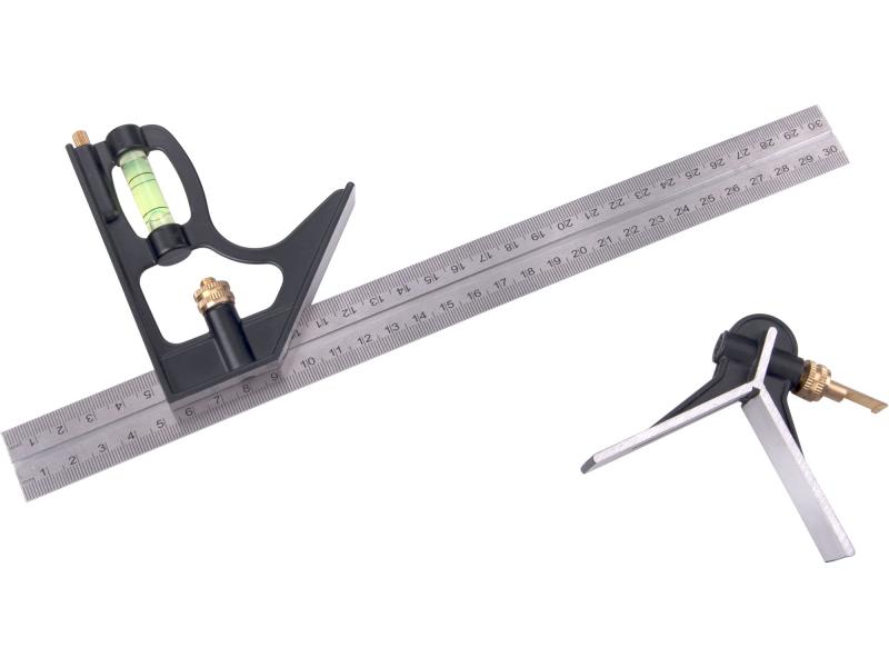 asztalos kombinált derékszög/vízmérték/vonalzó, többfunkciós, 300 mm, ALU/Inox, mm beosztás, 0°-45°-90° beosztás