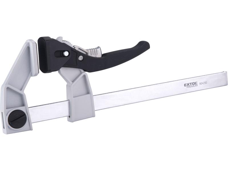 asztalos szorító, racsnis, ALU+acél+műanyag, 250×90 mm