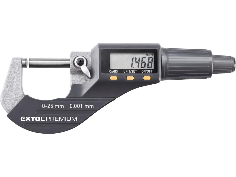 digitális mikrométer; felbontás×mérési tartomány: 0,001×25 mm, keményfém mérőfelület, pontosság ±0,002 mm
