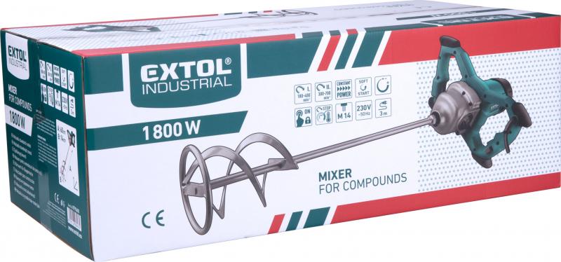 elektromos festék- és habarcskeverő gép (mixer) 1800W, M14 menet, lágy indítás, ford I=180-400/min, II=300-700/min