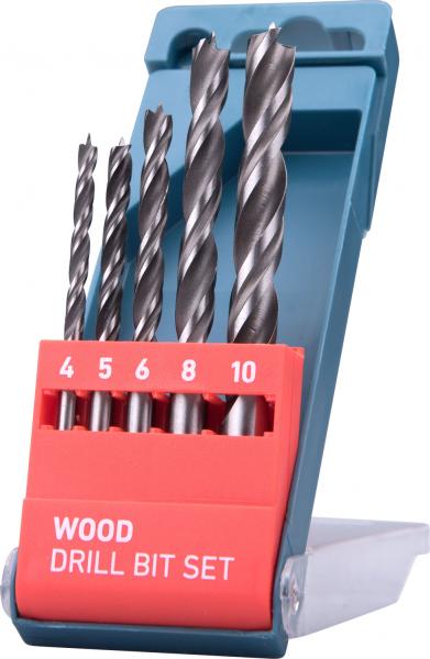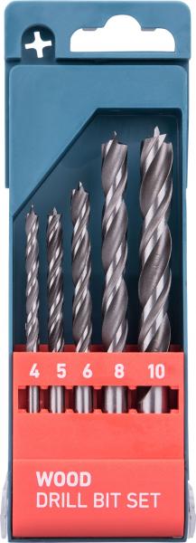 fafúró klt. 5 db, rövid, 4-5-6--8-10mm, Cr.V., normál befogás; műanyag dobozban