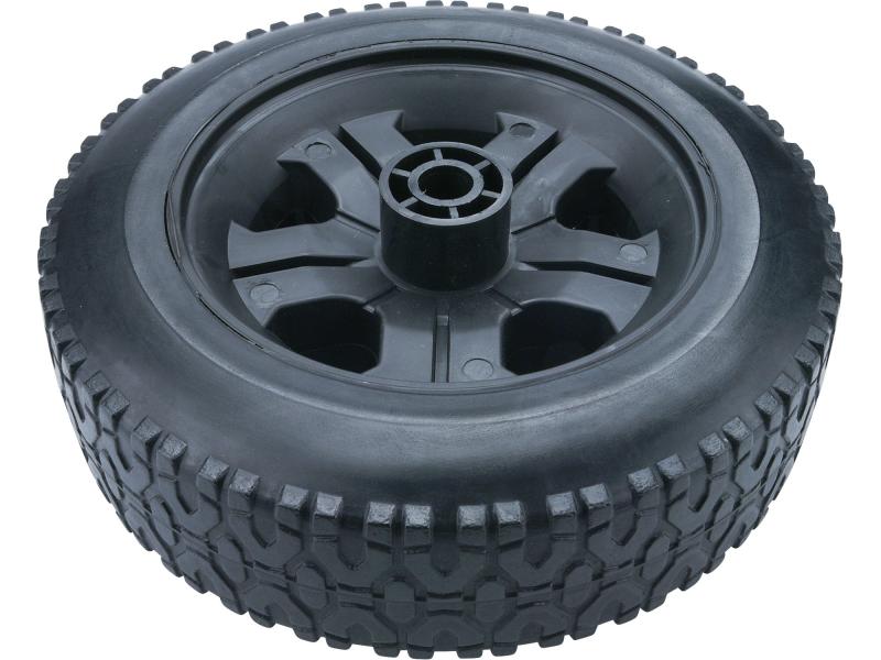 tömör gumi, átmérő: 24,5 cm/10", szélesség: 80 mm, műanyag felni, csapágy nélkül, tengely átmérő: 20 mm,