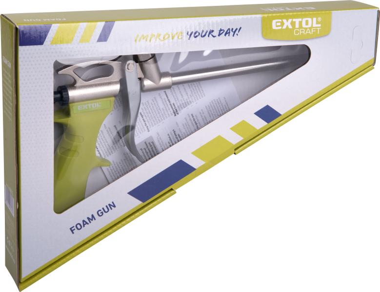 A purhab pisztoly cserélhető műanyag adagolócsövének segítségével a hab pontosan a kívánt helyre jut ki. A krómozással történő felületkezelés növeli a korrózióval szembeni ellenálló képességet. Az anyaggal való maximális takarékoskodás érdekében a kinyomó pisztoly szabályozócsavarja a habáramot a szükséges szélességűre állítja.