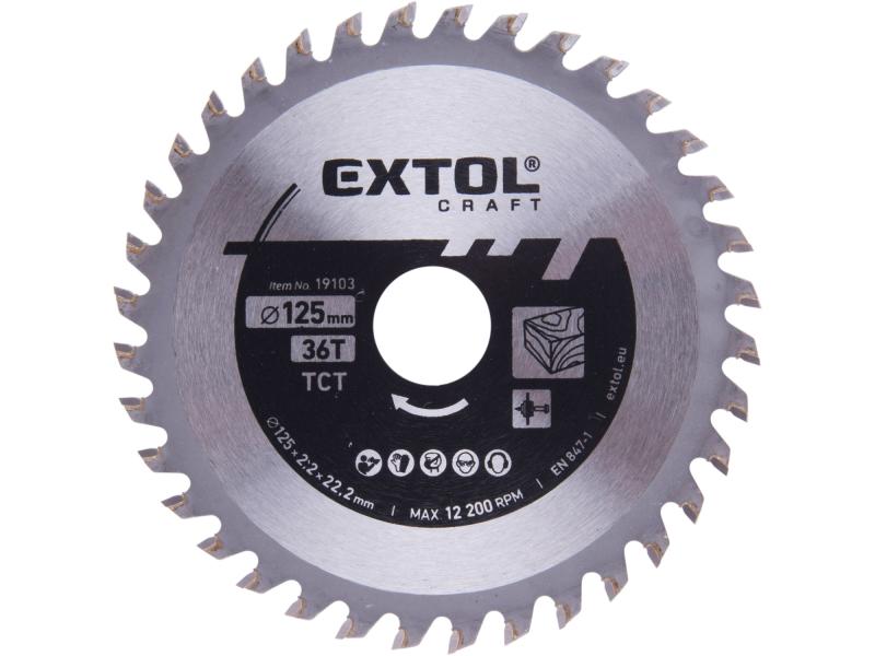 körfűrészlap, keményfémlapkás, 125×22,2mm (tengely átm), T36; 2,2 mm lapkaszélesség, max. 10.000 ford/perc