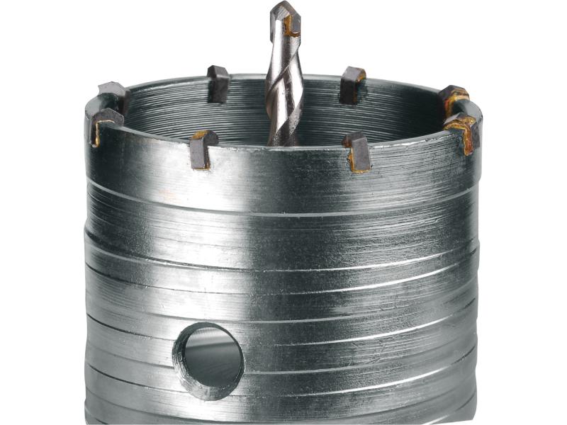 A karbid csúcs lehetővé teszi a fúrófej könnyű behatolását az anyagba. M16×100mm hosszú szár. Téglába puhább anyagú falakba ajánljuk.SDS Plus tokmányú fúrógépekbe lehet befogni. A falbasüllyeszthető műanyag villamos dobozok helyének kifúrására.