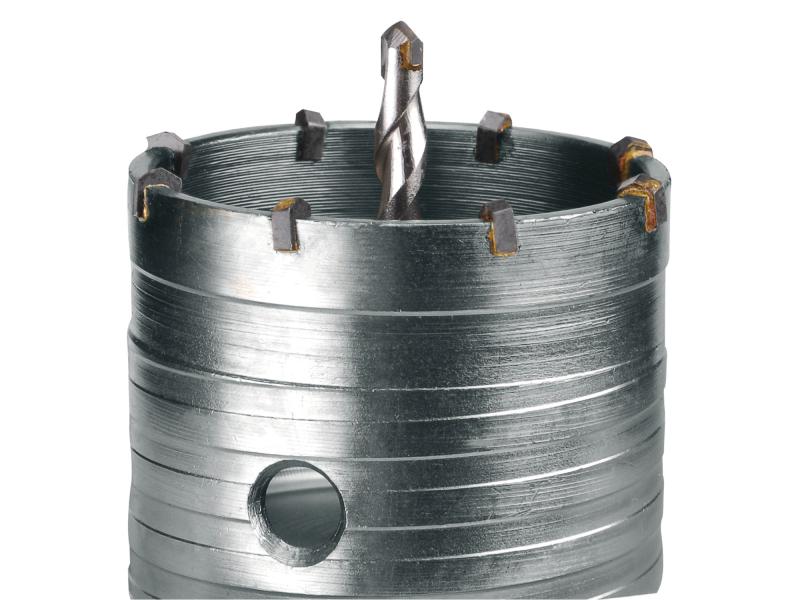 A karbid csúcs lehetővé teszi a fúrófej könnyű behatolását az anyagba. M16×100mm hosszú szár. Téglába puhább anyagú falakba ajánljuk. SDS Plus tokmányú fúrógépekbe lehet befogni. A falba süllyeszthető műanyag villamos dobozok helyének kifúrására.