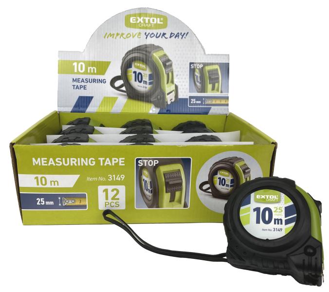 mérőszalag, gumírozott, 1 stoppos; 10m×25mm