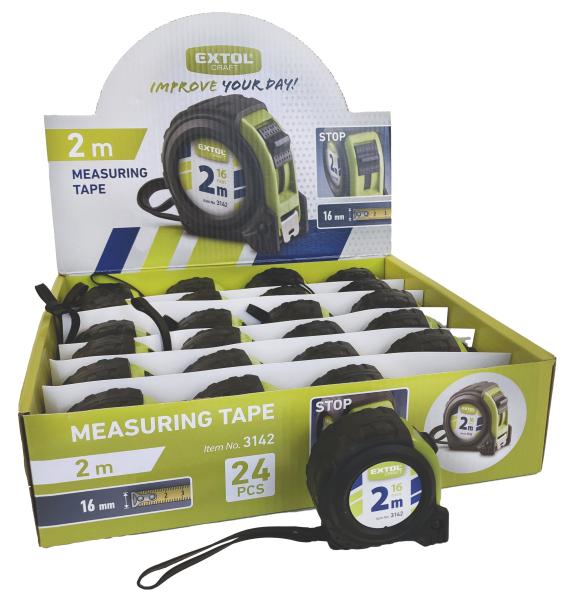 mérőszalag, gumírozott, 1 stoppos; 2m×16mm