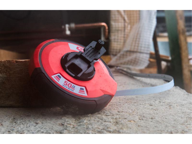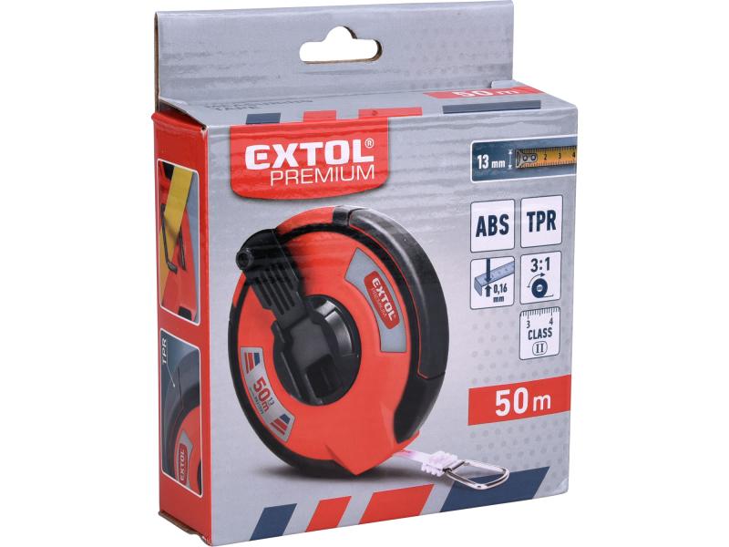ABS műanyag ház, csúszásgátló TPR gumis részekkel. Bevonatos fém szalag, 0,16mm vastag. CE, Class II. Belső áttétel: 3:1, a gyorsabb felcsévélés érdekében.