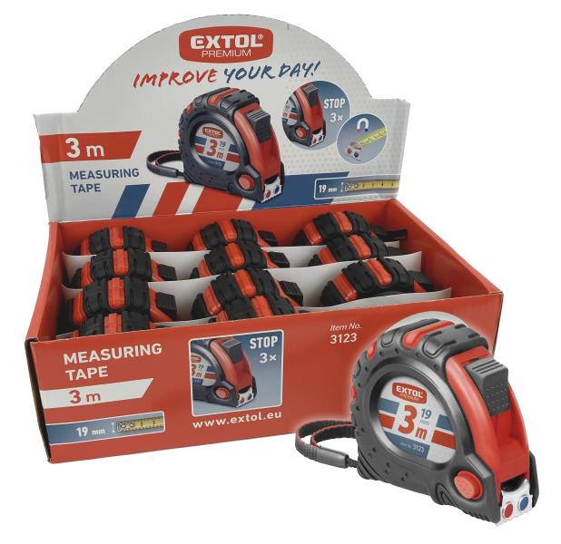 mérőszalag, gumírozott, mágneses 3 stoppos; 3m×19mm