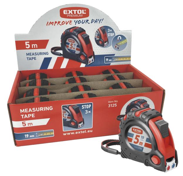 mérőszalag, gumírozott, mágneses 3 stoppos; 5m×19mm