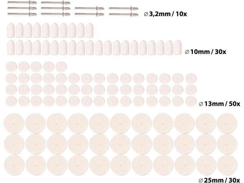 mini polírozó klt. 3,2 mm befogás, 120 db, 3 féle fejforma, gyapjú filc