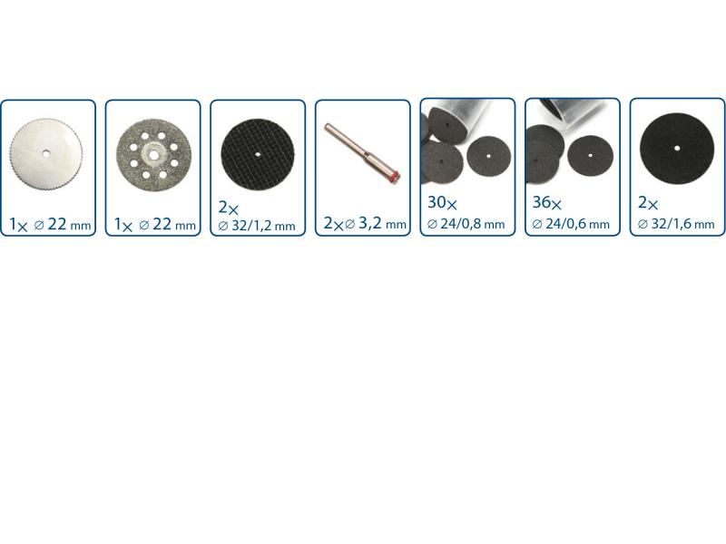 mini vágó- és daraboló klt. 3,2 mm befogás, 74 db, 6 féle vágófej