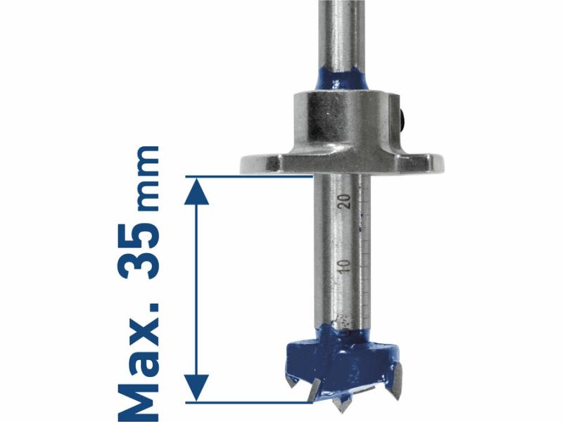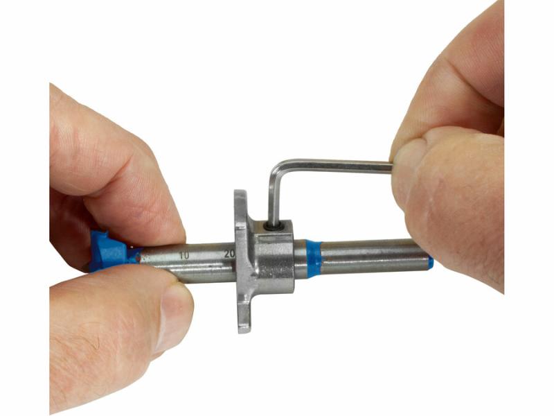 A pánthelymaró mélységütközővel van ellátva, így a fúrás mélysége előre beállítható 8-35mm tartományban a mellékelt L-imbuszkulccsal.