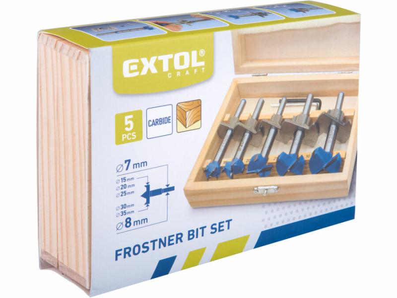 pánthelymaró klt. fára, 5db, átm.:15-20-25-30-35mm, mélységállítóval, keményfém lapkás, befogás: 7 ill. 8mm, fadobozban