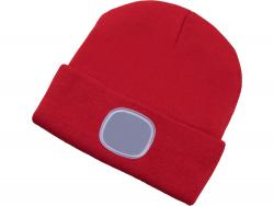 sapka, piros, kötött, kivehet? LED homloklámpával, 4×45 Lumen; USB tölthet? Li-ion, 3funkció (100%-75%-50% fénye.)