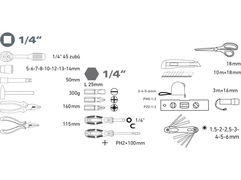 1/4" dugókulcsok: 5-6-7-8-10-12-13-14mm