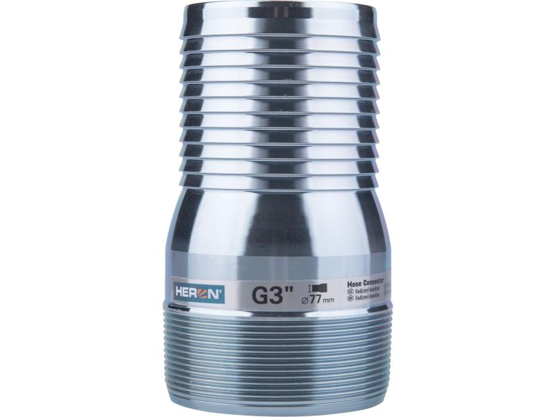 G3 menet, tömlő felőli vég: O76×71mm, teljes méret: O88×147mm, menet hossza: 33 mm, tömeg: 780 g, cink bevonatú acél