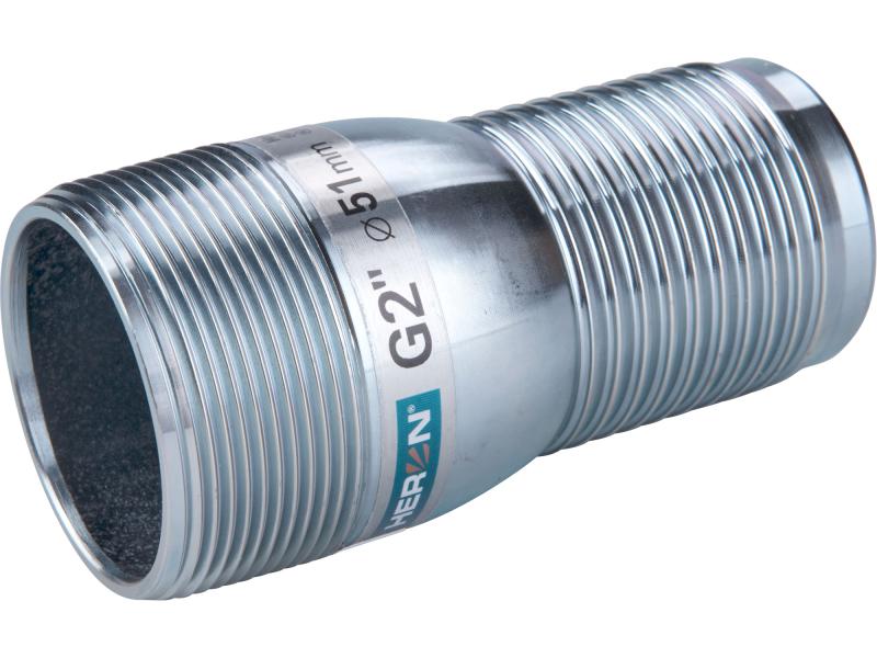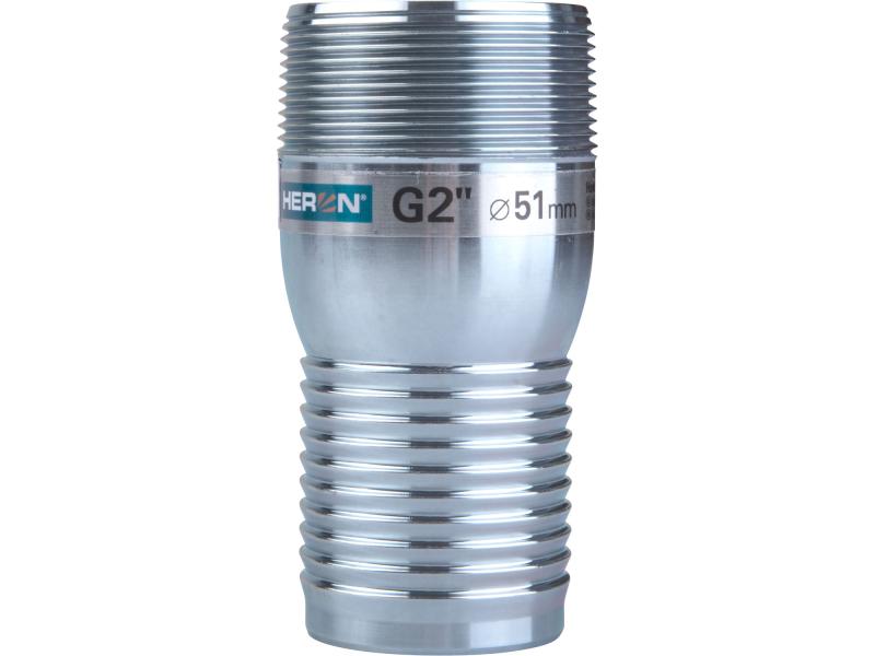 G2 menet, tömlő felőli vég: O51×50mm, teljes méret: O60×115mm, menet hossza: 25 mm, tömeg: 330 g, cink bevonatú acél