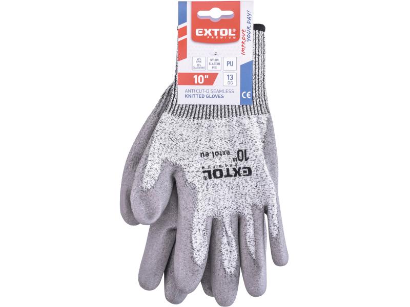 vágásbiztos kötött kesztyű, méret 10", poliuretánba mártott tenyér és újhegy, gumírozott mandzsetta