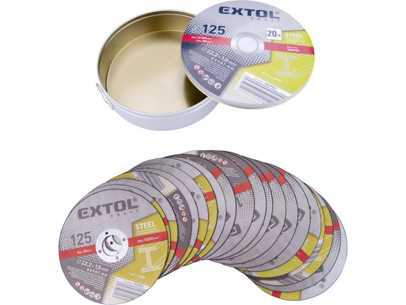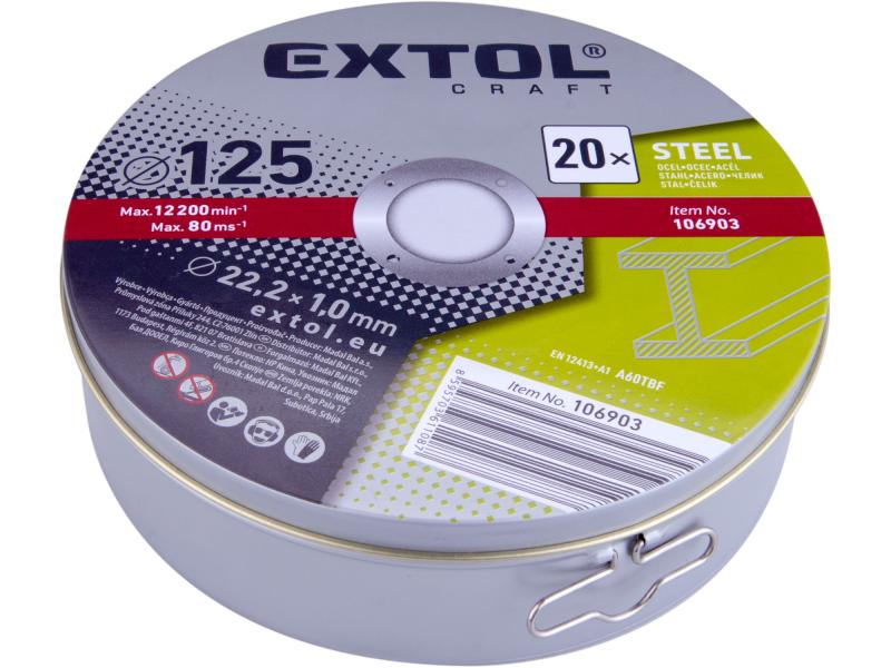 vágókorong 20 db, acélhoz; 125×1×22,2mm, max 12200 ford/perc, fémdobozban